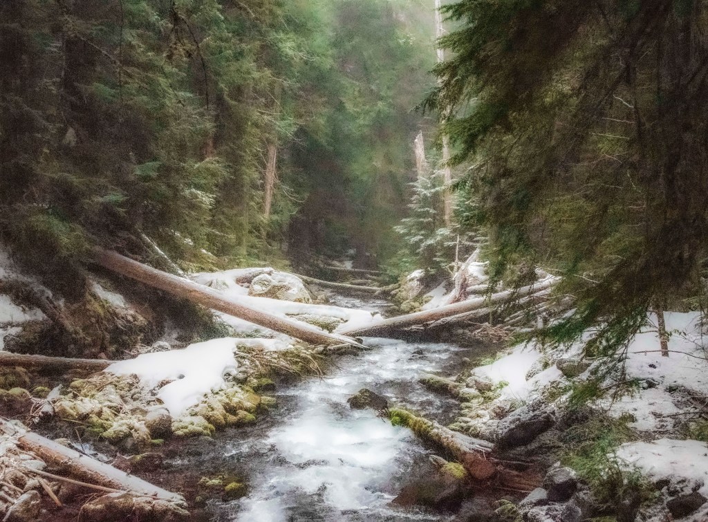 The creek doesn’t need to know my name even during the loneliest times, when snow blankets its banks, when trees block the wind, and when there’s a stillness reaching beyond quiet.