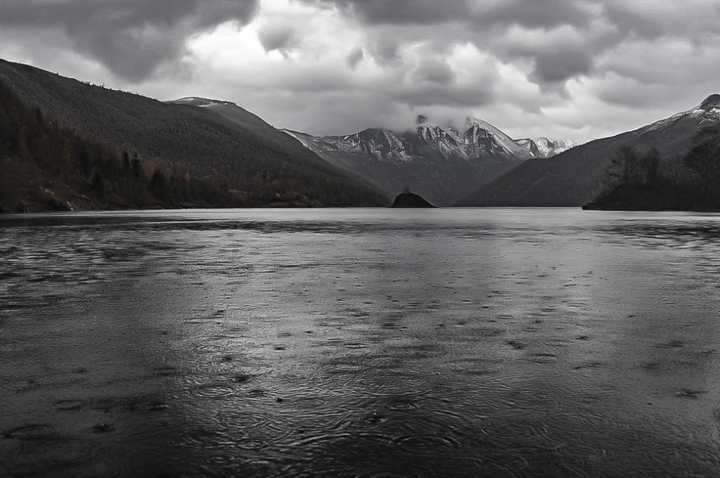This is an image I took of Cold Water Lake a couple of Novembers ago. Snow was late that year. But it was super rainy, to the point that the rain travelled horizontal at times. Mt. St. Helens (the volcano) is off the frame to the right, over the ridge and across a short valley where it is still, to this day, devoid of most trees. At times, the volcano looks so near that you think you could walk up to its summit rim wearing nothing but tennis shoes. (Click on the image to enlarge)